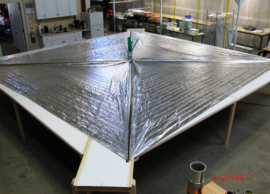 Attached photo shows one of many developments tests of the Lightsail sail, performed at the Stellar R&D shop at San Luis Obispo, California.